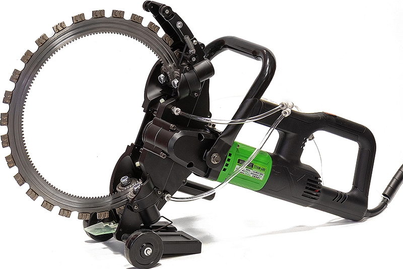 Электрический кольцерез по бетону Diamaster Titan-400 V2 (Диамастер Титан-400 В2) – профессиональный ручной электрический алмазный кольцевой резчик (ручная электрическая алмазная кольцерезная пила / стенорезная машина) для резки твердых материалов, таких, как: бетон, железобетон, кирпич, другие каменные и композитные материалы. Подходит для профессионального использования в строительстве, ремонте и демонтаже, обеспечивая высокую производительность и точность реза.
