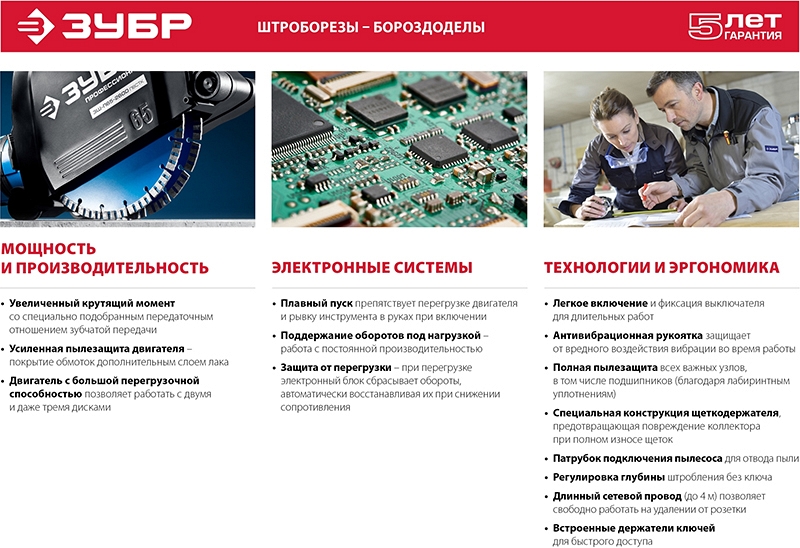 Преимущества штробореза Зубр Профессионал ЗШ-П30-1400 ПСТ:
