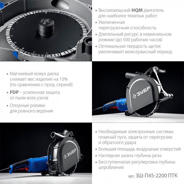 Преимущества штробореза Зубр Профессионал ЗШ-П45-2200 ПТК: